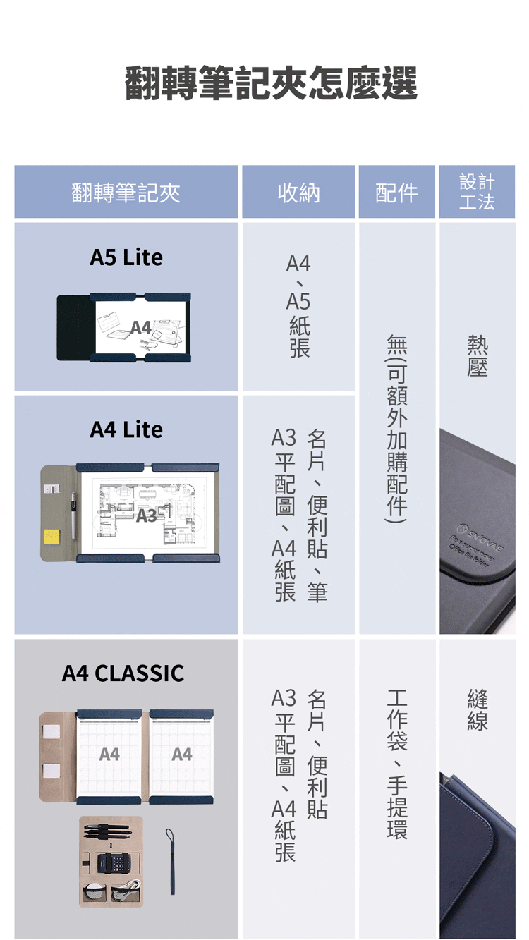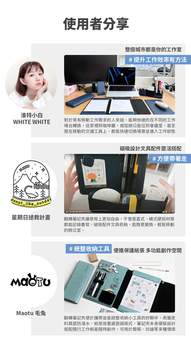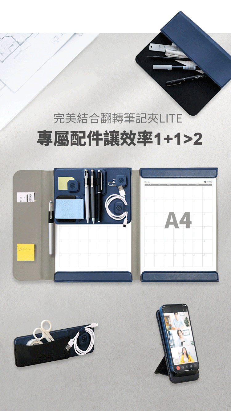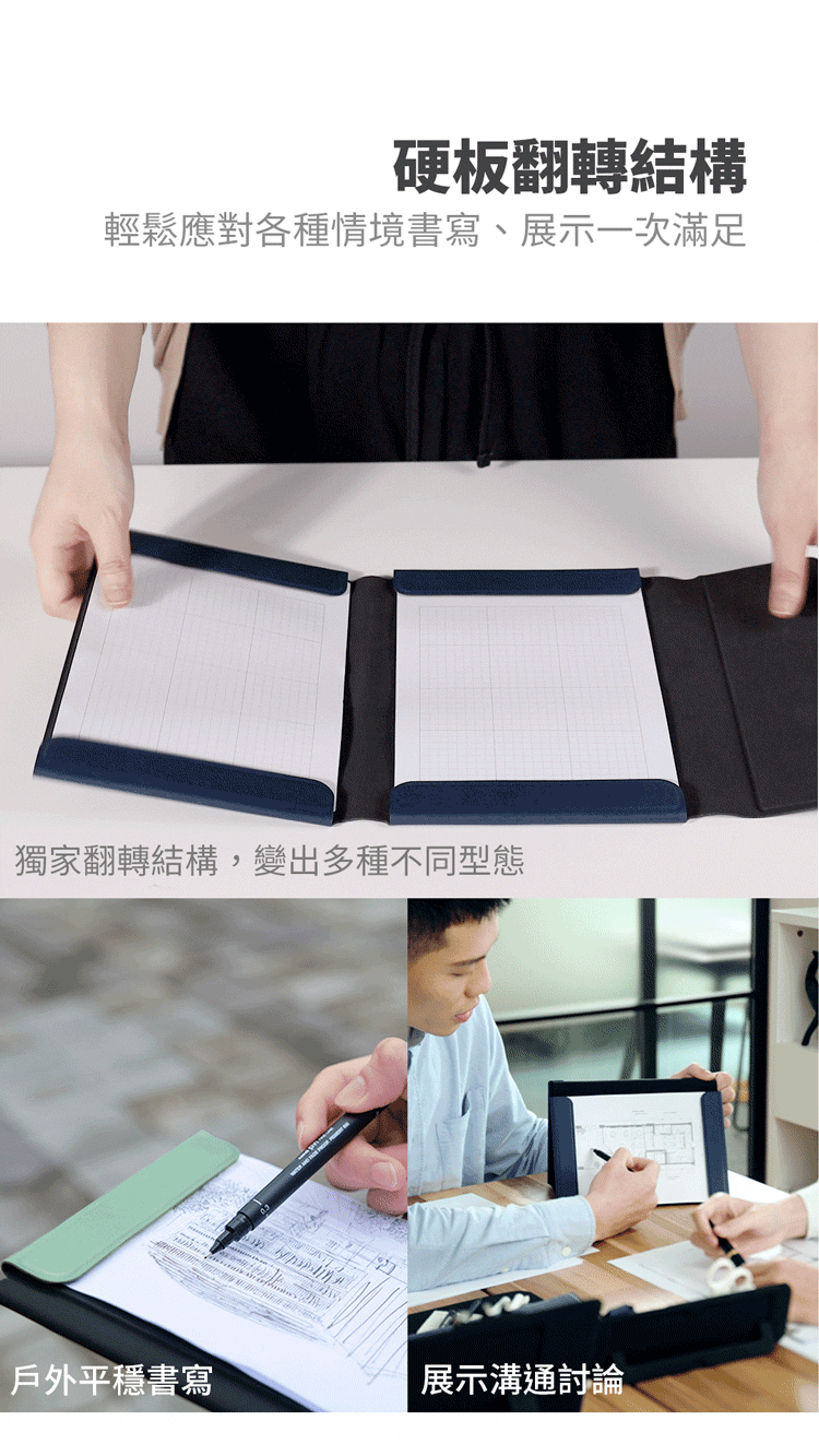 ⦿翻轉結構|1秒變身板夾,書寫、展示一次滿足
