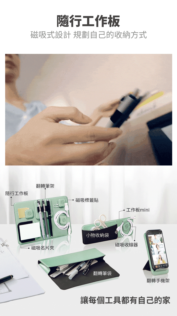 ⦿多功能工作板|方便攜帶文具3C用品,及手機架